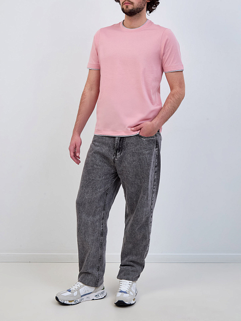 Хлопковая футболка из джерси с двойной окантовкой и патчем