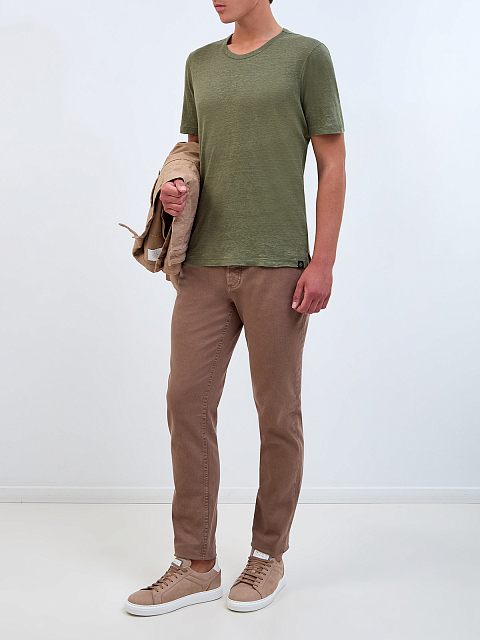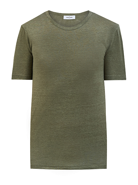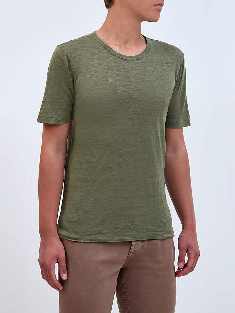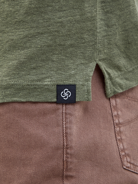 Футболка из меланжевой льняной ткани с фирменной нашивкой
