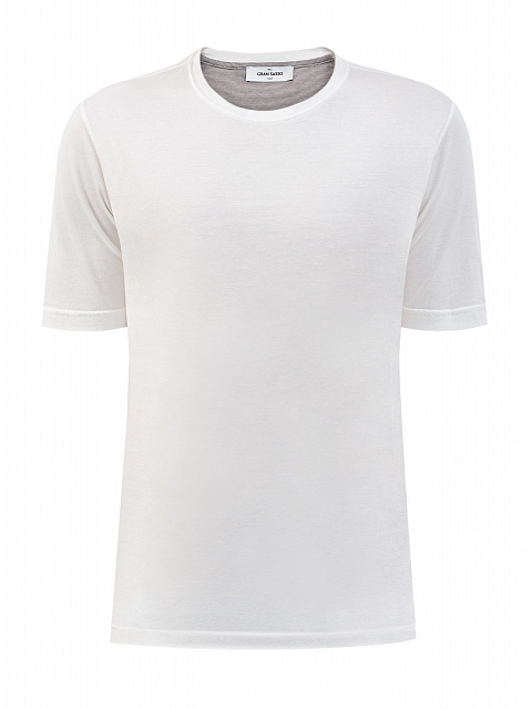 Мужская футболка от Gran Sasso представлена в базовом белом цвете. Однотонная модель из дышащего плотного хлопка — must-have любого гардероба. Свойства натуральных волокон придают ткани эластичность и обеспечивают посадку точно по фигуре. Детали: разрезы по боковым швам, круглый вырез горловины, внутренняя вставка с принтом в полоску. Сделано в Италии.