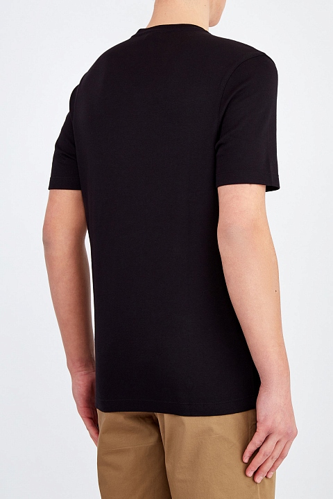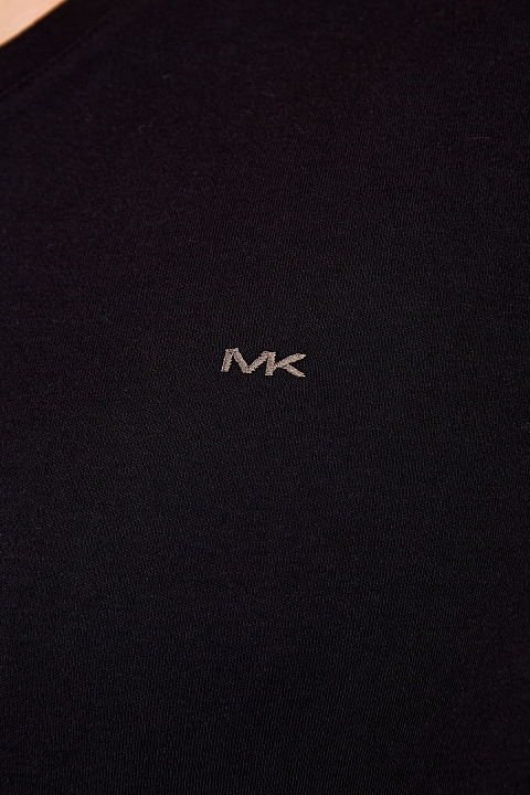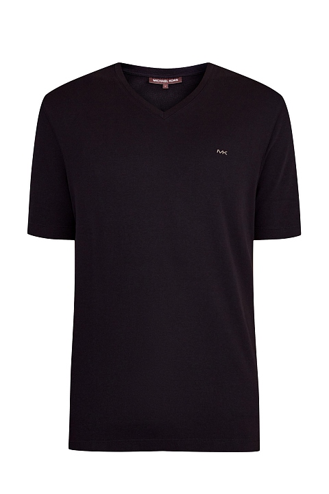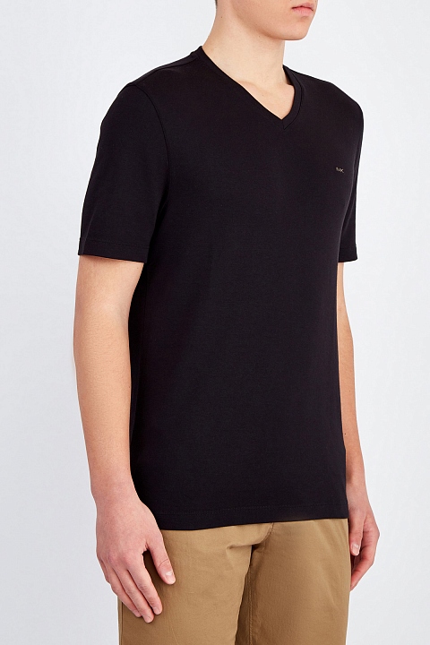 Минималистичная мужская футболка от Michael Kors создана из плотного хлопкового джерси в базовом черном цвете. Лаконичный дизайн подчеркнут вышитым логотипом на передней планке. Детали: V-образная пройма горловины с эластичной окантовкой, крой по фигуре, кромки закрыты объемным швом двойной иглой.