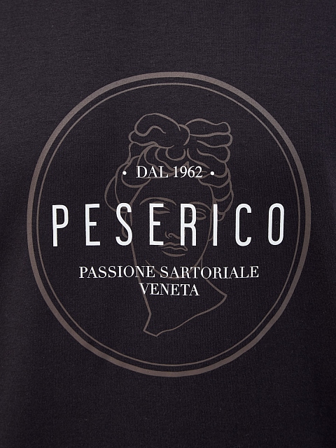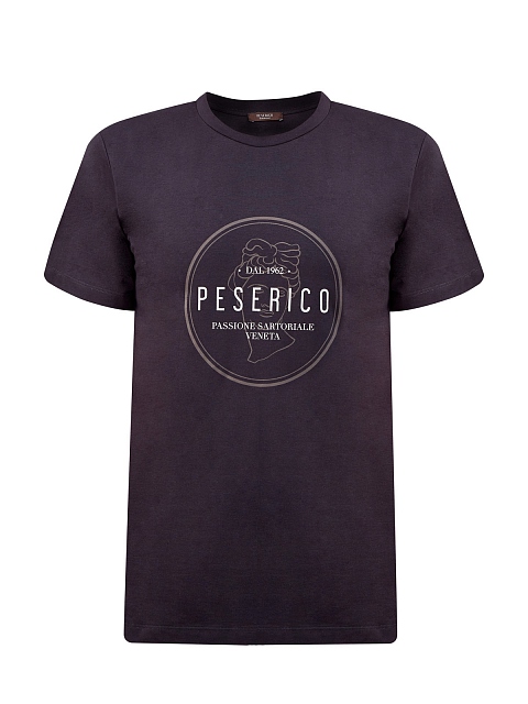 Минималистичная футболка от Peserico выполнена из египетского хлопка мако — легкой, гладкой и эластичной ткани с полностью натуральным составом. Изделие в глубоком оттенке ночного неба дополнено фирменным принтом с логотипом бренда. Детали: прямой крой, короткие рукава, круглый вырез. Сделано в Италии.