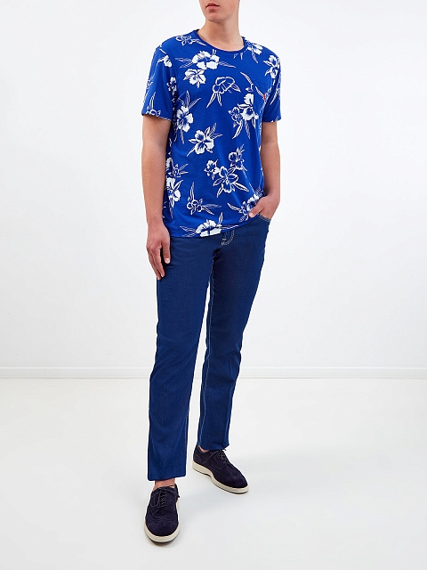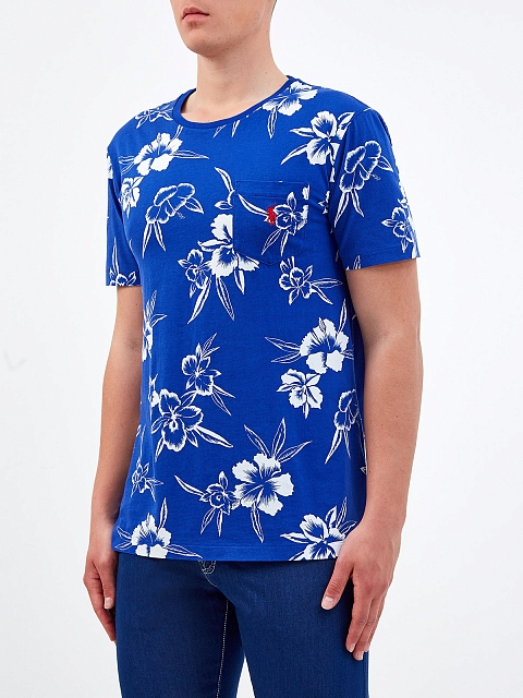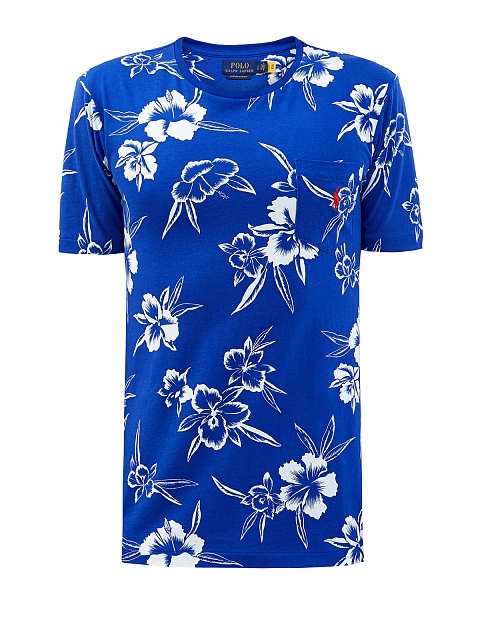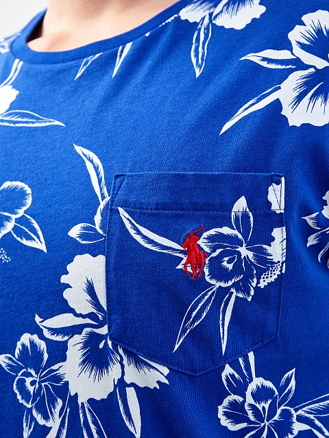 Яркая мужская футболка от Polo Ralph Lauren выполнена из мягкого хлопкового джерси — полностью натуральный состав делает модель идеальной для составления образов в летний сезон. Расслабленное настроение задает цветочный макро-принт и накладной карман с вышитым логотипом. Детали: короткие рукава, круглый вырез, облегающий фигуру крой.
