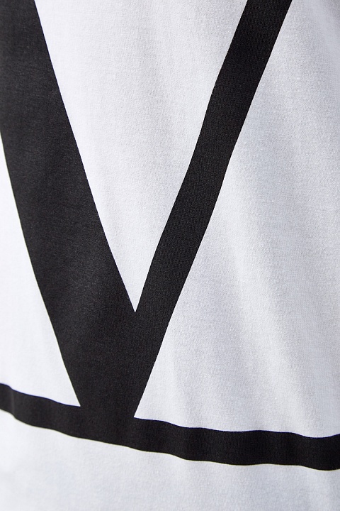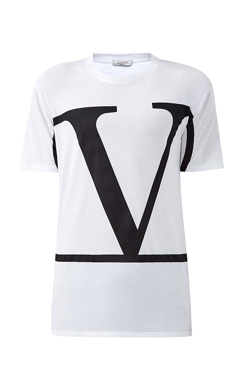 Лаконичная мужская футболка от Valentino выполнена из хлопкового джерси. Модель базового белого цвета декорирована контрастным макро-логотипом VLOGO, нанесенным в технике аппликации. Детали: круглая пройма горловины с эластичной окантовкой, посадка по фигуре, кромки рукавов и нижний край закрыты объемным швом двойной иглой. Сделано в Италии.