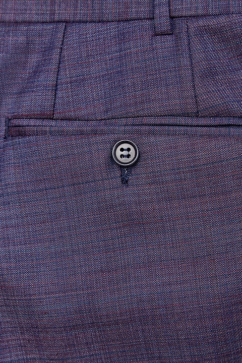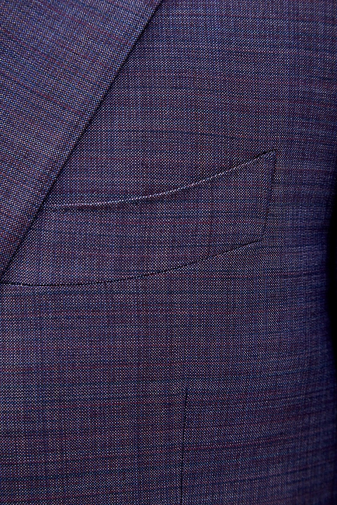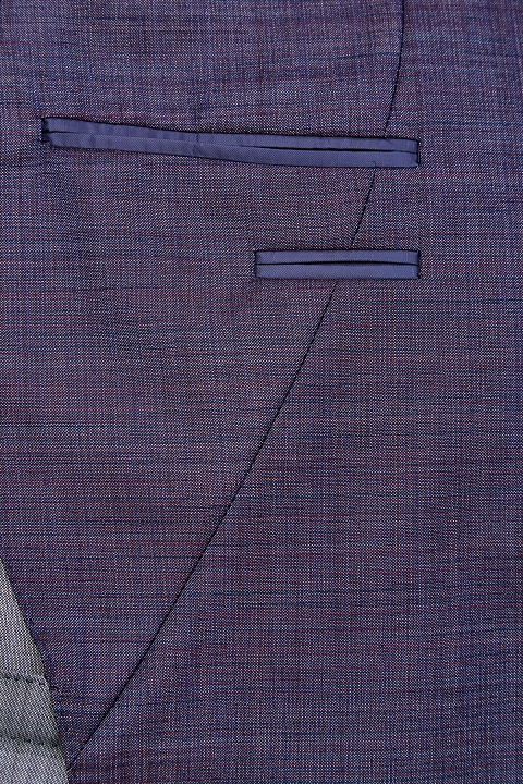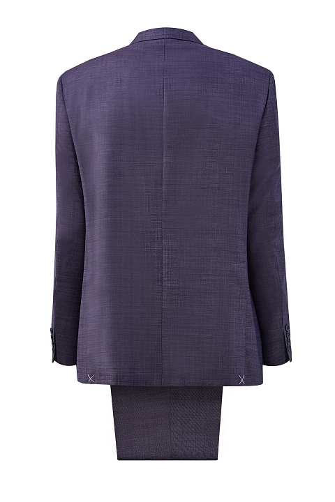 Костюм-двойка ручной работы от Canali. Графический эффект по поверхности создает переплетение нитей алых и сиреневых тонов. Модель в традициях неаполитанской школы с мягкой линией плеча и полуподкладкой из купро, которая обеспечивает свободу движений. Брюки прямого кроя завершают аутфит в классическом стиле. Детали: шлицы на спинке, карманы с клапанами на пиджаке и прорезные карманы на брюках. Сделано в Италии.