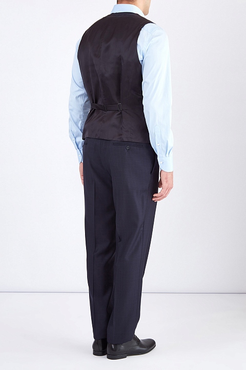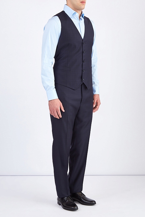 Мужской костюм-тройка Canali отражает философию Модного дома. В коллекции осень-зима особое внимание дизайнеры уделили элегантному стилю, свойственному итальянской моде, который в сочетании с ценными материалами и изысканными тканями обеспечивает безупречный деловой образ, идеальную посадку по фигуре и комфорт во время всего дня. Костюм украшен тонким клетчатым узором, дополнен подкладкой пиджака и спинкой жилета из купро в тон. Внутренняя комфортная хлопковая отделка брюк дополнена символикой бренда. Сделано в Италии.