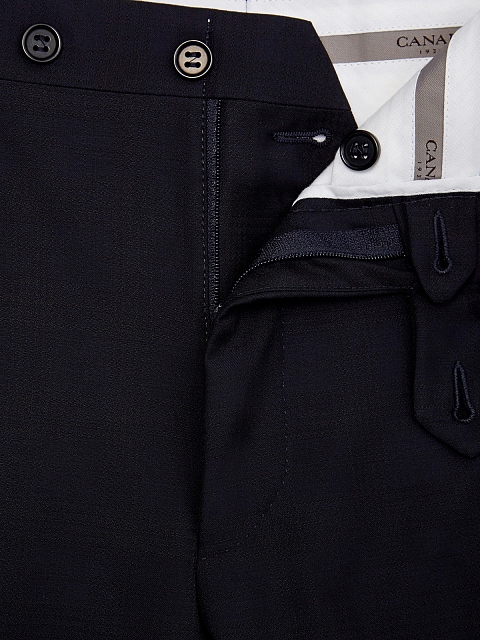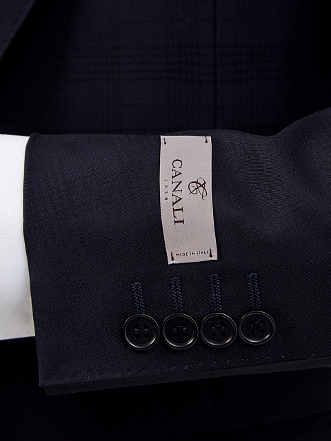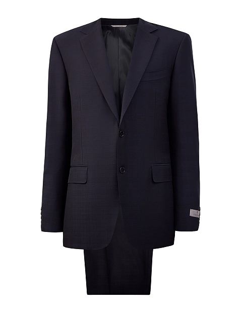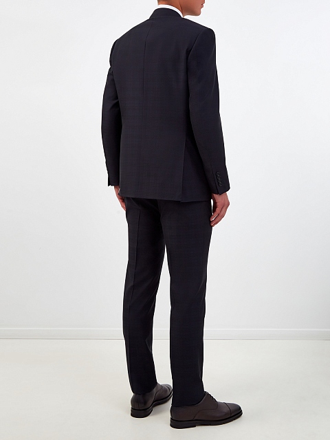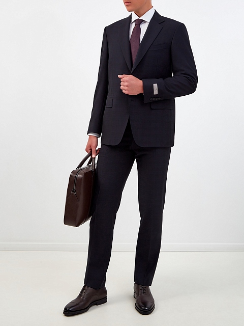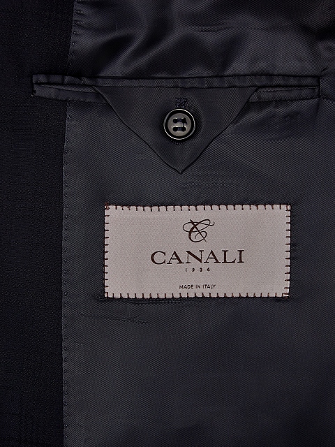 Мужской классический костюм от Canali создан из тонкой, гибкой и эластичной шерсти. Поверхность в глубоком оттенке индиго украшена лаконичным мелованным узором в клетку. Внутренняя комфортная хлопковая отделка брюк дополнена фирменной символикой, атласная подкладка пиджака из купро — потайными кармашками и монограммой бренда. Застежка пиджака стандартной длины осуществляется на две пуговицы. Сделано в Италии.
