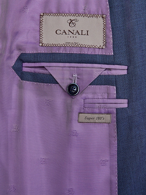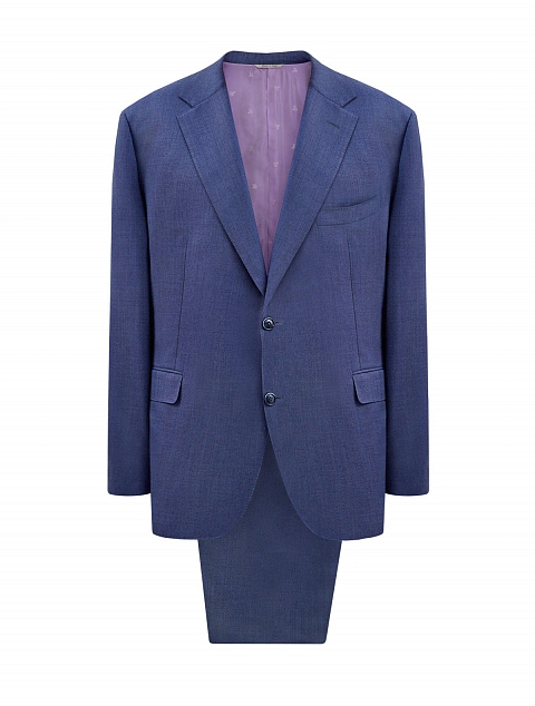 Мужской классический костюм от Сanali создан из тонкой, гибкой и эластичной шерсти. Поверхность универсального синего оттенка украшена едва заметным меланжевым узором. Внутренняя комфортная хлопковая отделка брюк дополнена фирменной символикой, атласная подкладка пиджака из купро — потайными кармашками и монограммой бренда. Застежка пиджака стандартной длины осуществляется на две пуговицы. Сделано в Италии.