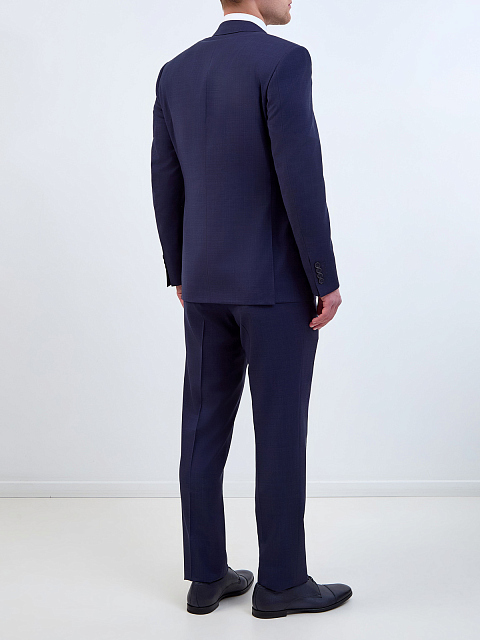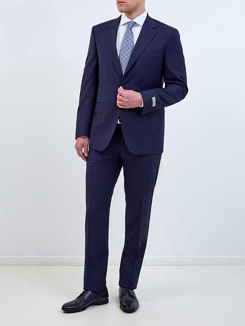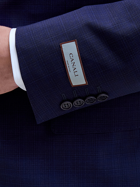 Классический мужской костюм ручной работы от Canali создан из традиционной шерстяной ткани. Поверхность насыщенного оттенка индиго украшена лаконичным принтом в мелованную клетку. Внутренняя комфортная хлопковая отделка брюк дополнена фирменной символикой, атласная подкладка пиджака из купро — потайными кармашками и монограммой бренда. Застежка пиджака стандартной длины осуществляется на две пуговицы. Сделано в Италии.