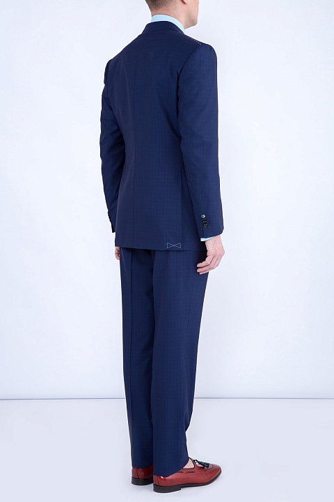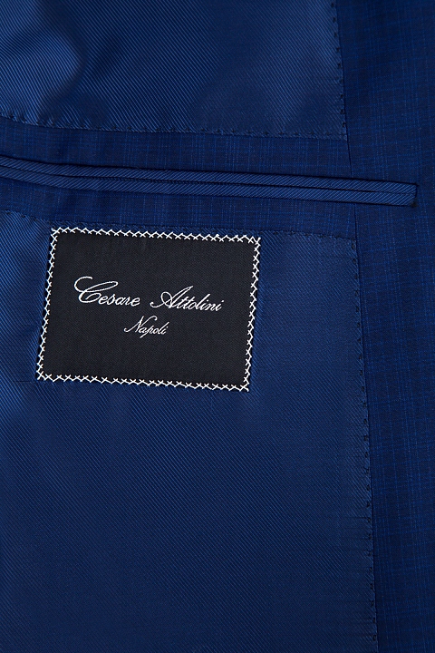 Классический мужской костюм Cesare Attolini с безупречным неаполитанским кроем. Модель создана из тончайшей и прочной шерсти 160's в традициях ручного пошива с искусной обработкой английского воротника с лацканами, петлиц и рукавов. Изделие дополнено внутренней подкладкой из ткани бемберг, которая удерживает гораздо больше тепла, чем обычная подкладочная ткань и не холодит тело. Поверхность чернильно-синего цвета украшена едва заметным клетчатым узором. Сделано в Италии.
