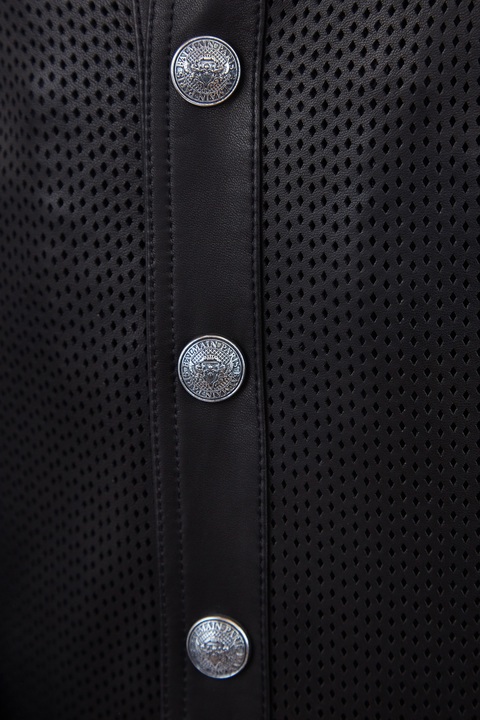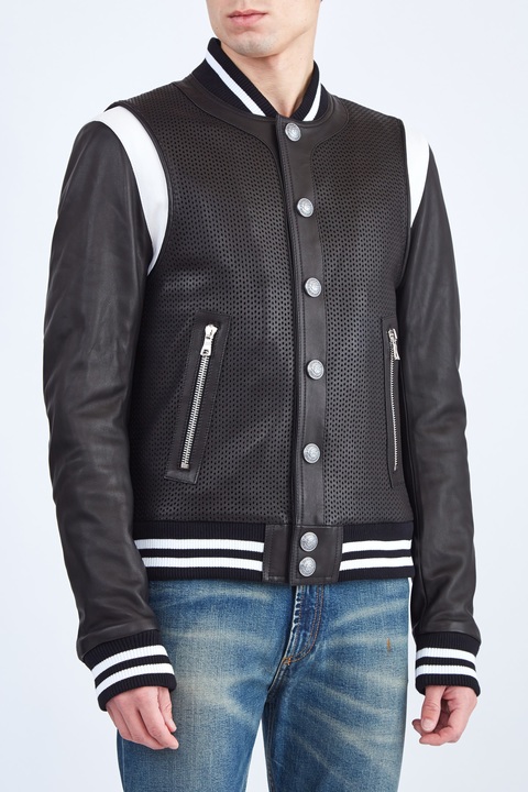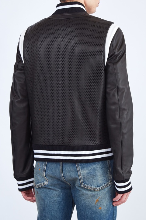 Куртка-бомбер из кожи ягненка с перфорацией