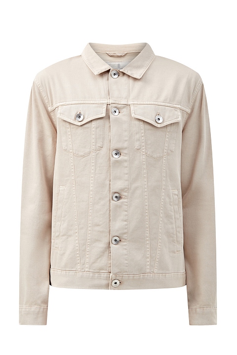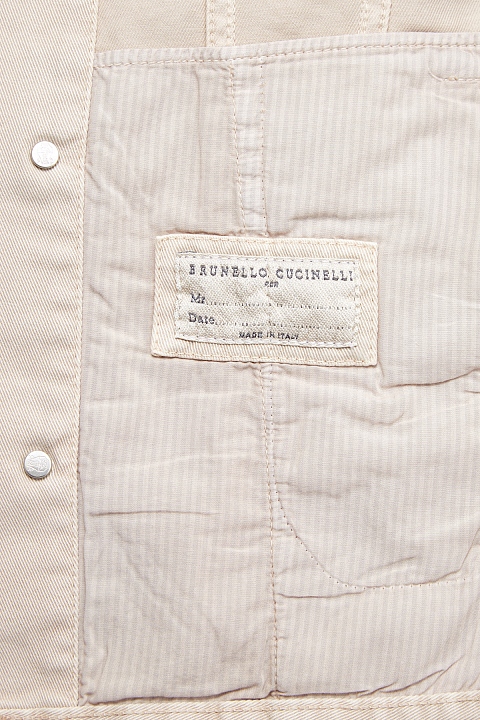 Базовая джинсовая куртка от Brunello Cucinelli создана из денима плотностью 9.5 унций, который идеально подходит для носки в летний сезон. Однотонный бежевый цвет делает модель идеальной для составления повседневных образов. Конструкция без подкладки обеспечивает легкость и комфорт. Детали: брендированные пуговицы, четыре кармана. Длина по спинке 60 см. Сделано в Италии.