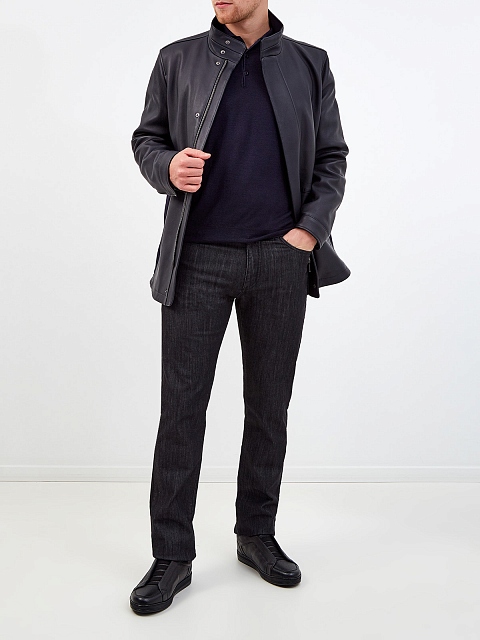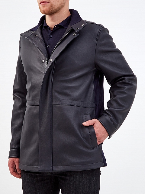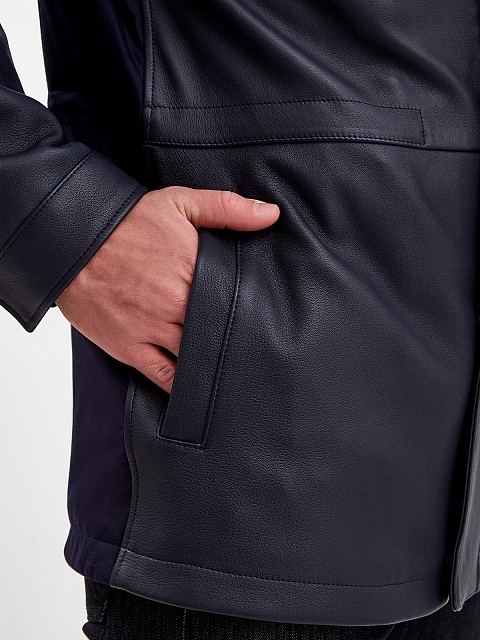 Куртка ручной работы из кожи ягненка и плотного габардина