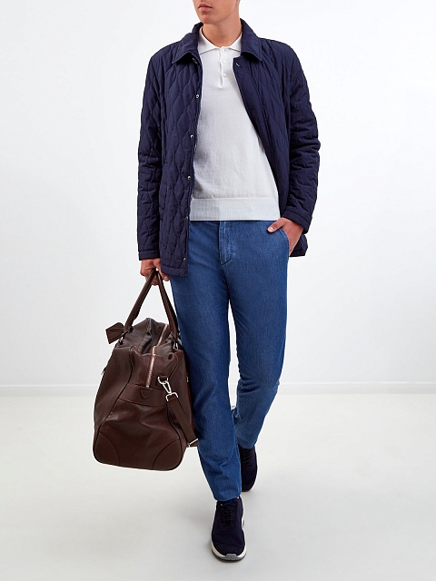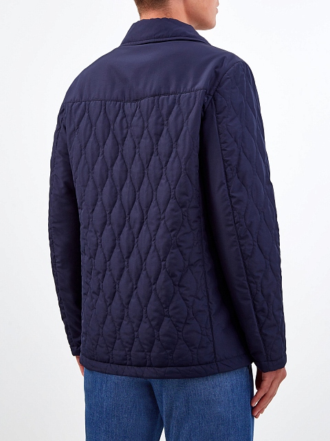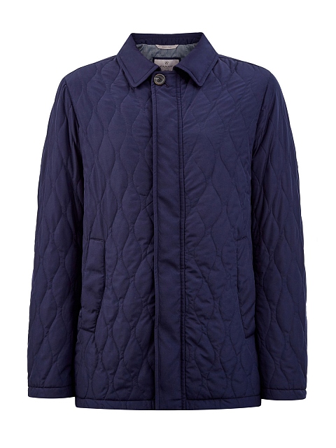 Лаконичная мужская куртка от Canali выполнена из водонепроницаемой ткани Rain Protection, стеганый узор делает модель гармоничным дополнением повседневных образов. Слегка удлиненный крой подходит для сочетания с блейзерами и пиджаками. Детали: отложной воротник, прорезные карманы с бортами, двойная линия застежки на пуговицы и молнию. Сделано в Италии.
