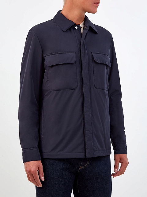 Легкая куртка-рубашка из матовой микрофибры от Canali сочетает универсальный свободный крой и внимание к деталям. Модель отличается практичным дизайном с центральной планкой на пуговицах, накладными карманами и потайными застежками-кнопками, а также лаконичными элементами — окрашенной вручную кожаной нашивкой и манжетами со скрытыми застежками. Сделано в Италии.