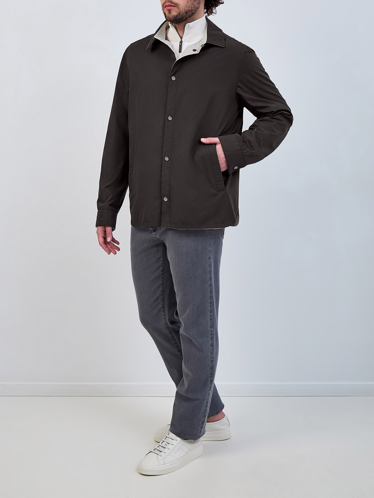 Двусторонняя куртка-ветровка из матового влагозащитного нейлона
