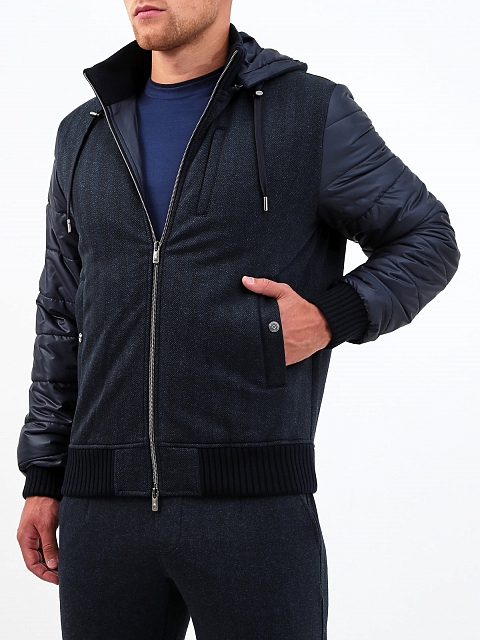 Комбинированная куртка с шевронным узором и съемным капюшоном