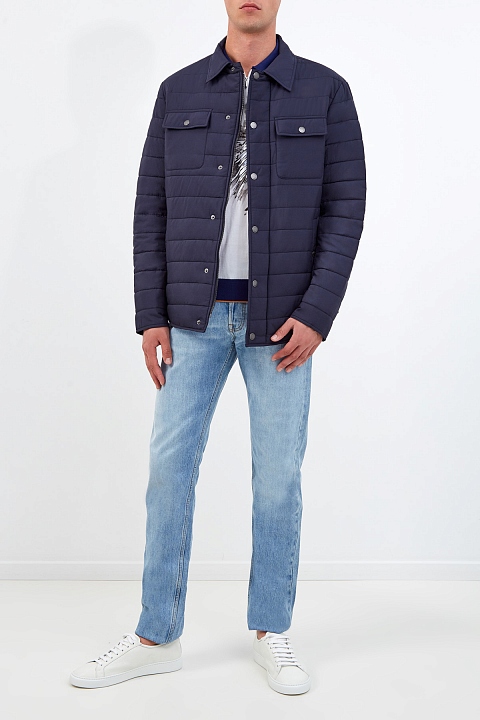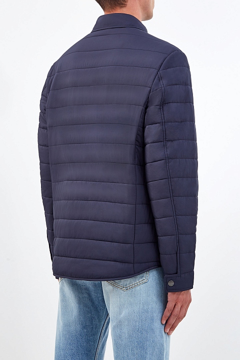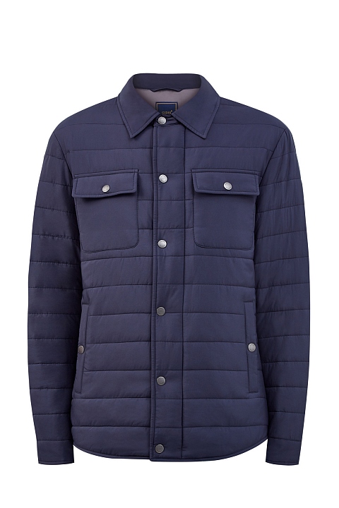 Куртка в стиле вестерн от Cudgi заимствует линии кроя у ковбойской джинсовой рубашки. Матовый нейлон оттенка индиго защищает от влаги, а внутренняя прослойка из синтепона дополнительно утепляет изделие. Модель с двумя аутентичными нагрудными карманами и закругленным нижним срезом. Детали: двойная линия застежки, отложной воротник.
