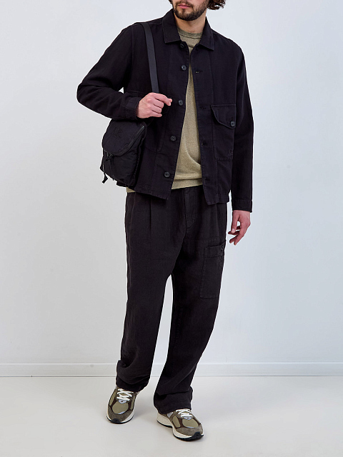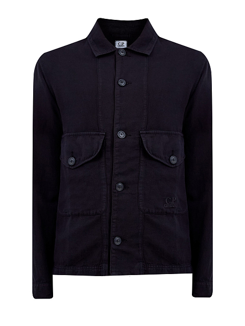 Куртка-рубашка из хлопка и льна с вышитым логотипом в тон