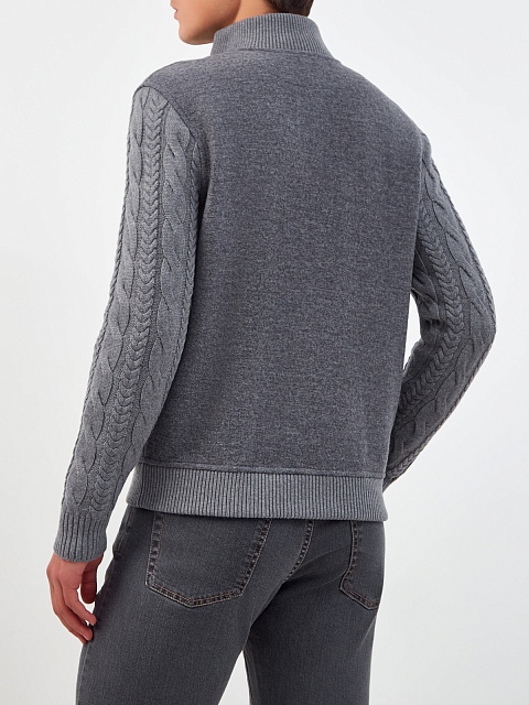 Комбинированный бомбер из шерсти с рукавами аранской вязки