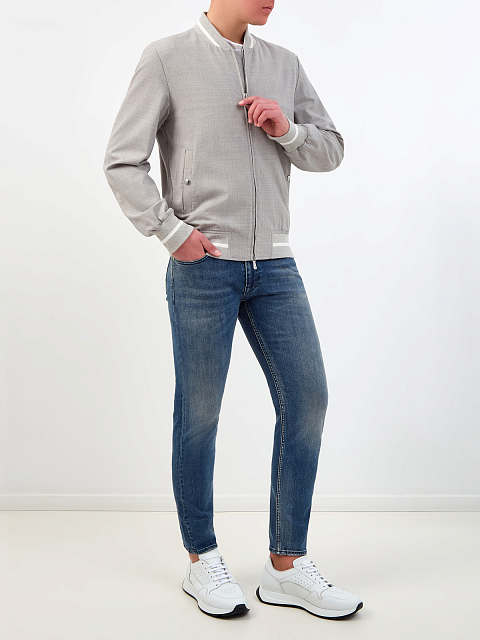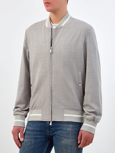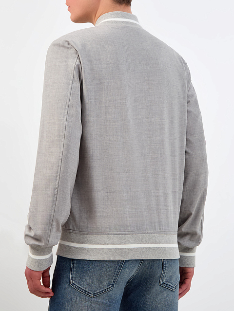 Бомбер из тонкой шерсти с трикотажной отделкой в полоску