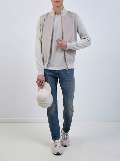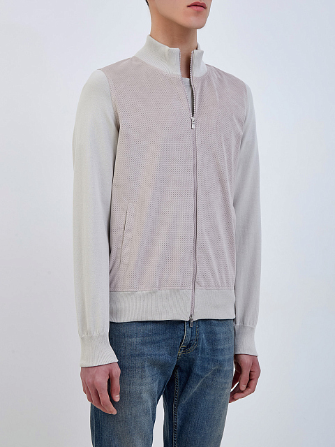Комбинированный кардиган из хлопка organic и алькантары с перфорацией