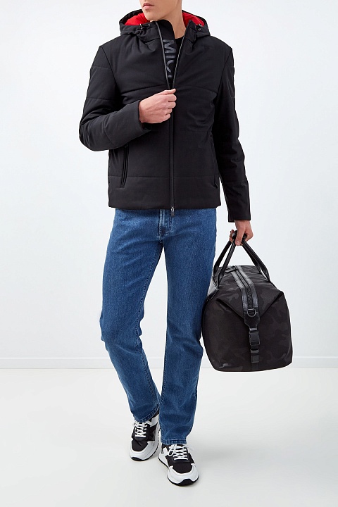 Стильная мужская куртка от Michael Kors выполнена из технологичного нейлона. Эластичные волокна в составе обеспечивают свободу движений, а специальная обработка защищает от влаги. Модель в черном цвете дополнена контрастной подкладкой, которая придает образу динамику. Детали: несъемный капюшон, водонепроницаемые молнии, объемный внутренний наполнитель. Длина по спинке 68 см.