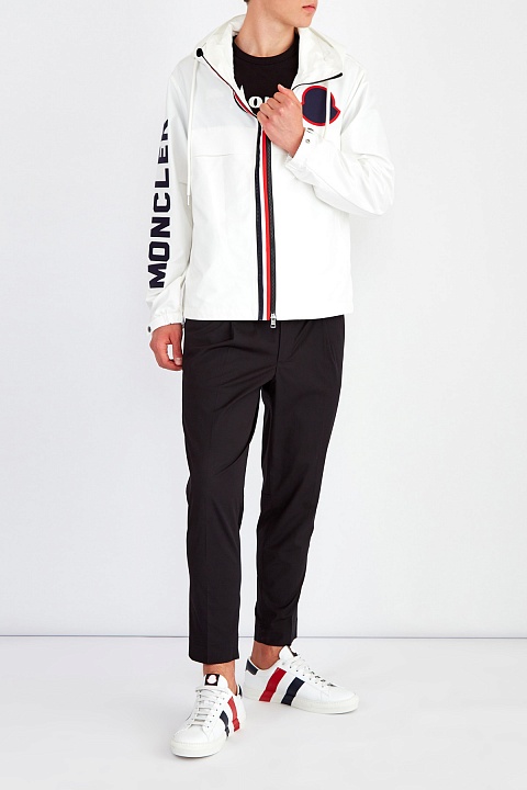 Эффектная ветровка Montreal от Moncler выполнена из сверхлегкого нейлона microtechnique в белом цвете. Особенностью модели стала оригинальная застежка-молния, которую можно застегнуть с двух позиций. Фирменный стиль подчеркивает отделка тесьмой в культовой гамме, макро-логотип в технике аппликации на передней планке и монограммой бренда на рукаве. Детали: капюшон на кулиске, подкладка из нейлона.