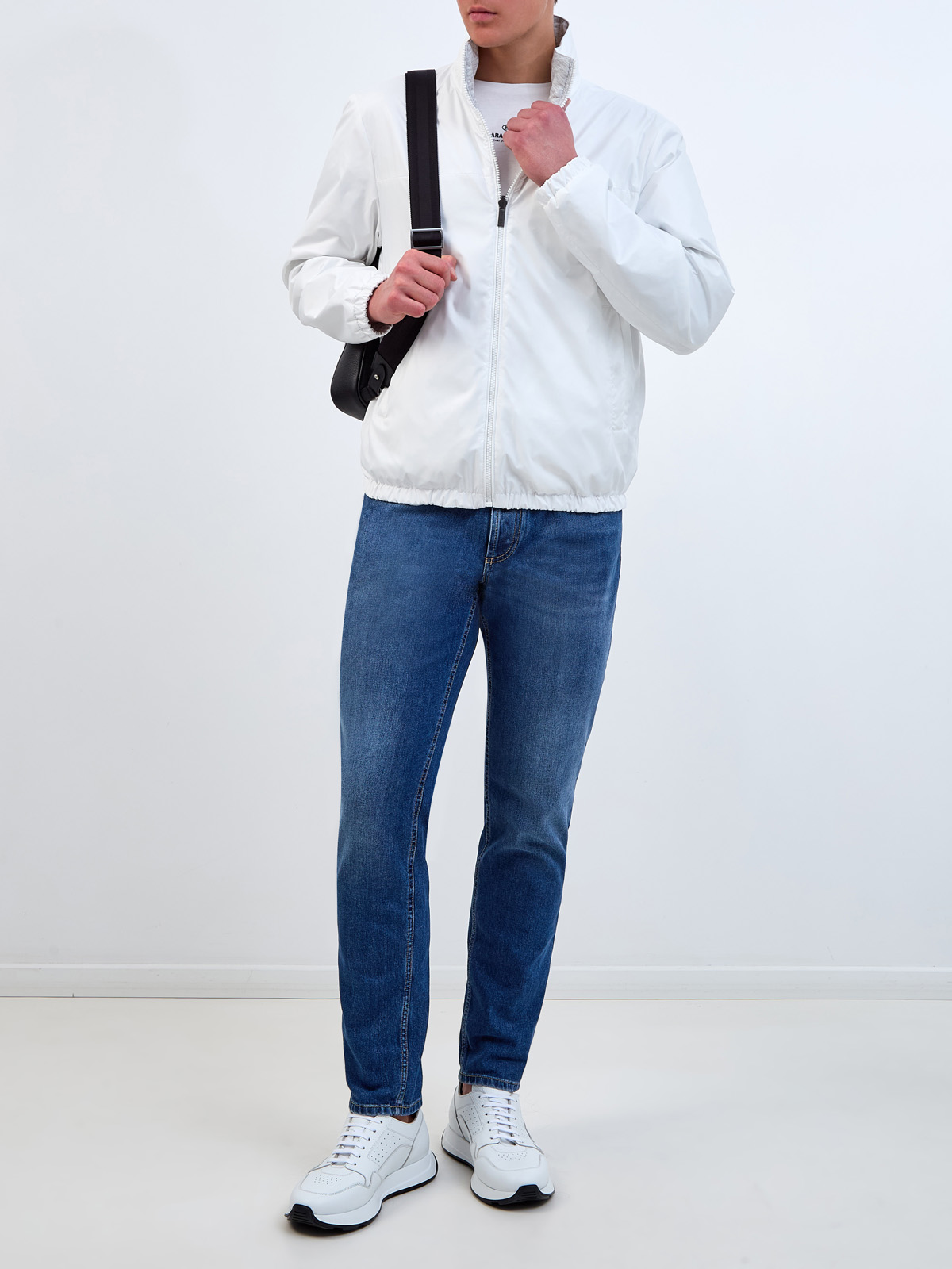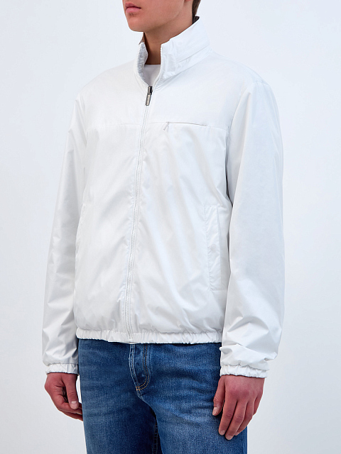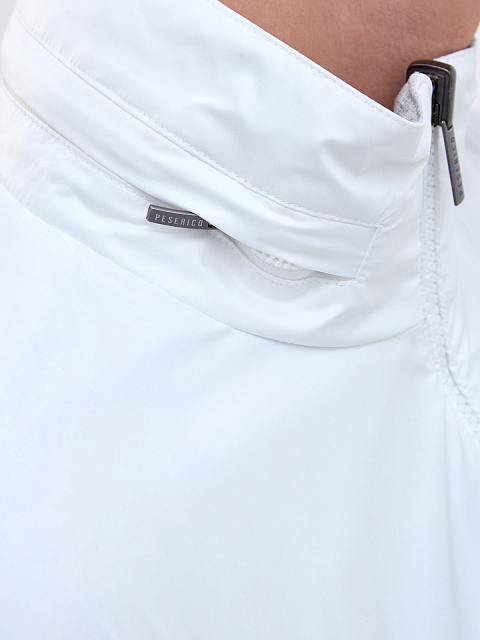 Двусторонняя мужская куртка от Peserico характеризуется лаконичным дизайном и технологичными материалами. Модель выполнена из матового влагозащитного нейлона в белом цвете с одной стороны, и в меланжево-сером из хлопка — с другой. Прорезные карманы, потайной капюшон и застежка на молнию завершают функциональный дизайн. Сделано в Италии.