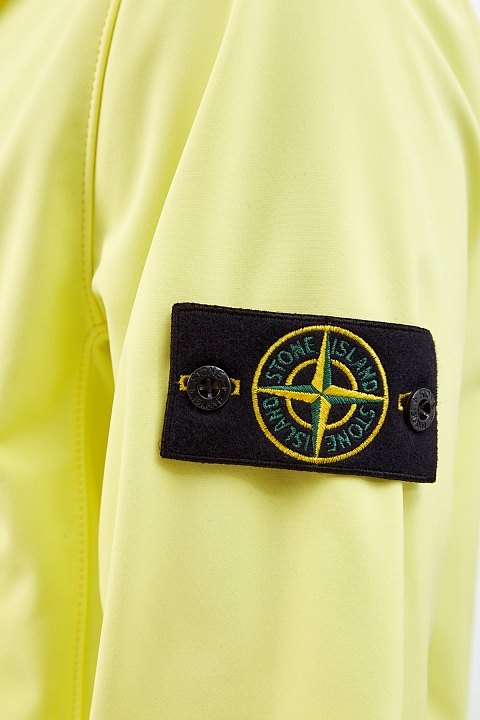 Легкая мужская ветровка от Stone Island выполнена в ярком лимонном оттенке. Для создания модели был выбран высокотехнологичный трехслойный материал Light Soft Shell-R. Уникальная структура ткани не стесняет движений и обеспечивает надежную защиту от влаги и ветра. Изделие дополнено диагональными прорезными карманами по бокам. Эластичные манжеты и нижний край спинки завершают дизайн. Детали: застежка на молнию на передней планке, воротник-стойка с капюшоном.