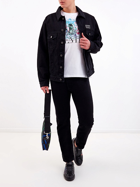 Куртка-oversize из плотного денима с объемным принтом VLTN
