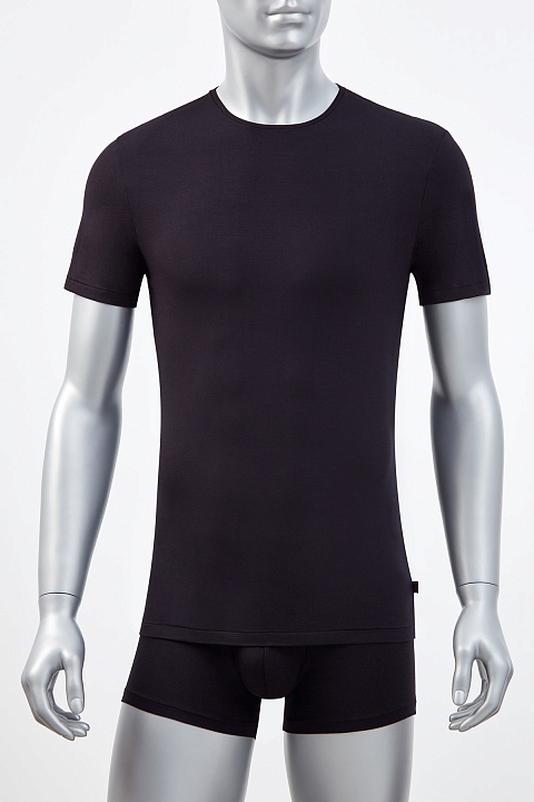 Базовая мужская футболка от Derek Rose создана из эластичного микромодала в универсальном черном цвете. Инновационная ткань на основе древесных волокон отличается высокой гигроскопичностью и прочностью. Минималистичный дизайн делает модель идеальной для дома, спорта и повседневных аутфитов. Детали: короткие рукава, круглый вырез горловины, прямой нижний край.