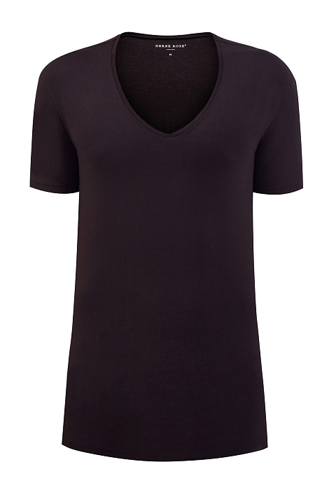 Однотонная мужская футболка от Derek Rose выполнена из комфортного дышащего хлопка в универсальном черном цвете. Специальная обработка материала — мерсеризация — предотвращает появление складок и придает волокнам дополнительную гладкость. Глубокий вырез горловины и короткие рукава делают модель незаметной под одеждой, а удлиненный крой обеспечивает комфортную посадку.