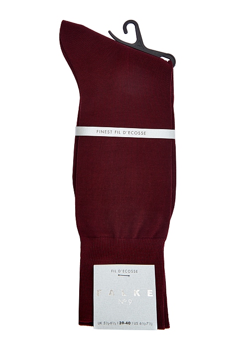 Мужские носки из коллекции Falke № 9 Maco с завышенным голенищем выполнены мастерами бренда вручную. Модель изготовлена из дышащей и гигроскопичной египетской хлопковой пряжи Karnak в оттенке бордо с деликатным сатиновым блеском по поверхности. Уплотненная нижняя часть дополнена вышитой контрастной нитью монограммой бренда. Широкая резинка в рубчик обеспечивает комфортную фиксацию. Сделано в Германии.