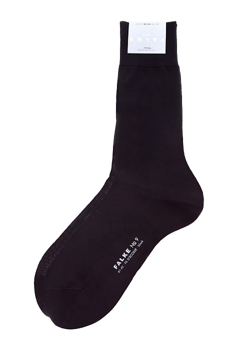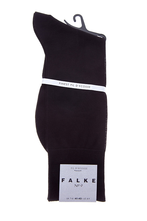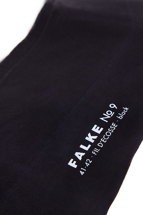 Мужские носки из коллекции Falke № 9 Maco с завышенным голенищем выполнены мастерами бренда вручную. Модель изготовлена из дышащей и гигроскопичной египетской хлопковой пряжи Karnak глубокого черного тона с деликатным сатиновым блеском по поверхности. Уплотненная нижняя часть дополнена вышитой контрастной нитью монограммой бренда. Широкая резинка в рубчик обеспечивает комфортную фиксацию. Сделано в Германии.