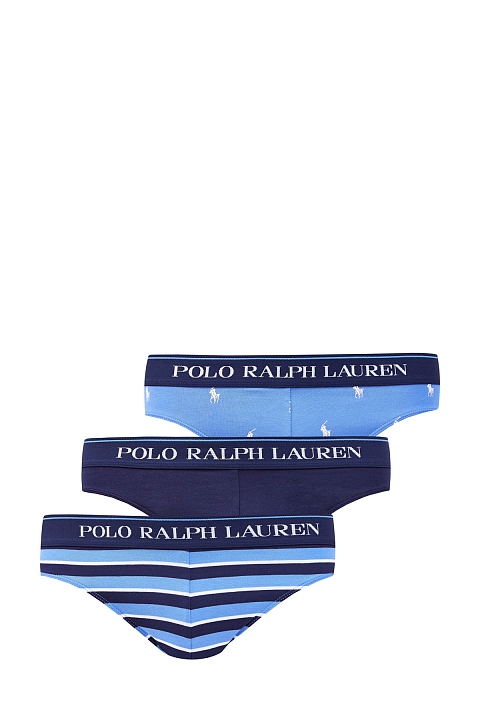 Комплект из трех трусов-слипов от Polo Ralph Lauren. Изделия выполнены из гладкого хлопкового джерси. Крой с объемными вставками и фактурными швами и волокна эластана в составе ткани обеспечивают посадку точно по фигуре. Модель выполнена в трех цветовых решениях в голубой гамме и дополнена контрастным поясом с монограммой бренда.