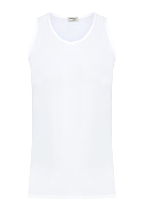 Мужская майка Zimmerli из эластичного износостойкого хлопка белоснежного тона, не подверженного искажению цвета. Модель с круглой горловиной и широкими проймами для рук. Волокна эластана в составе обеспечивают комфортную посадку по фигуре, а мягкие швы исключают дискомфорт во время носки.
