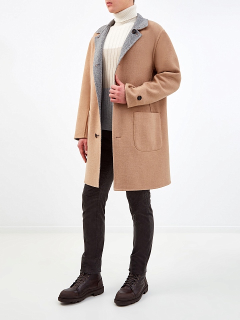 Двустороннее пальто-редингот из шерсти и кашемира