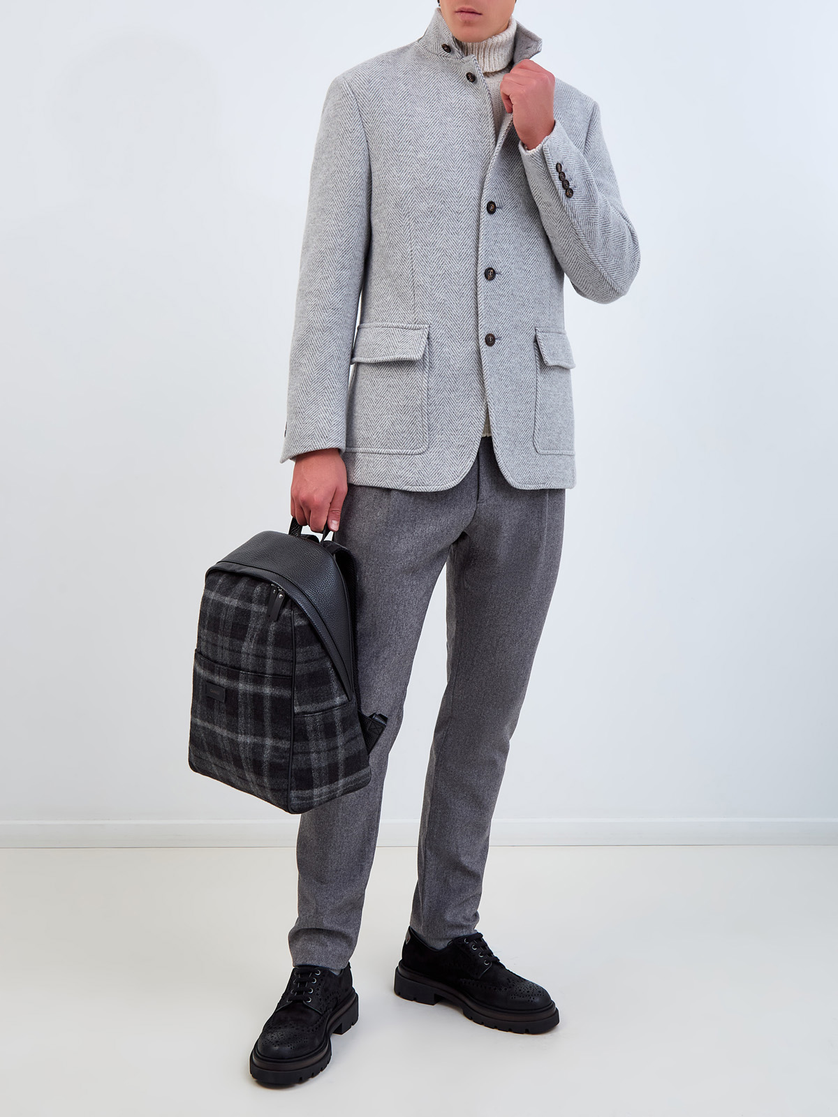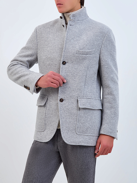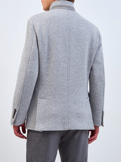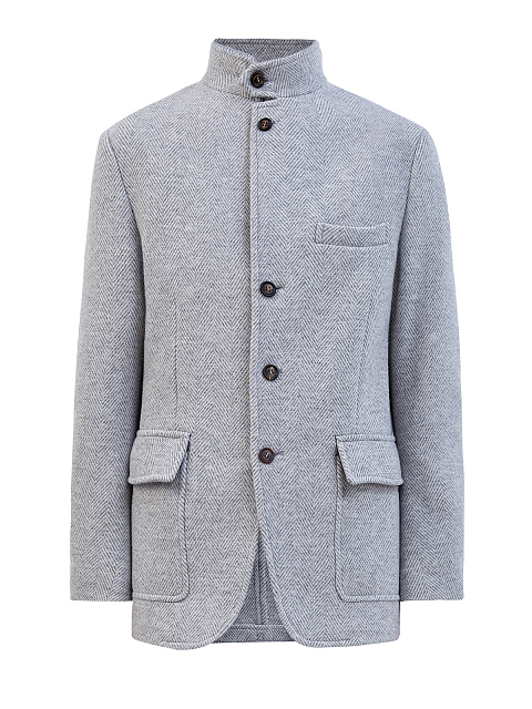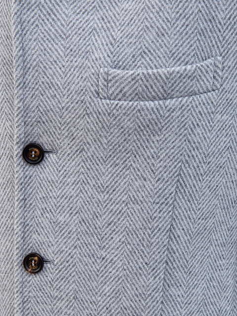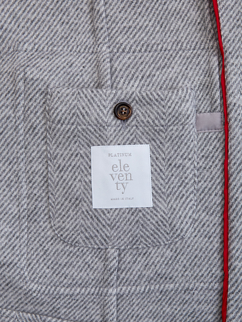 Лаконичное мужское пальто с шевронным узором от Eleventy. Модель выполнена из плотного шерстяного драпа, фактурный материал с добавлением волокон эластана обеспечивает защиту от ветра и подчеркивает строгий крой изделия. Детали: накладные карманы, застежка на брендированные пуговицы, объемные вытачки, шлицы на спинке, замшевая вставка на спинке ворота.
