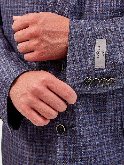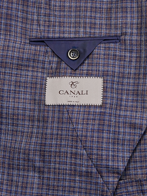 Лаконичный пиджак от Canali выполнен в сине-коричневой гамме из легкой шерстяной ткани с добавлением шелка и льна. Выверенный состав надежно сохраняет форму изделия. Крой в неаполитанском стиле подчеркнут мягкой линией плеч, мелованным принтом и полуподкладкой из купро. Шлицы на спинке обеспечивают посадку по фигуре. Сделано в Италии.
