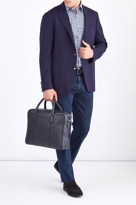 Стильный мужской пиджак из коллекции Canali в стиле smart casual выполнен из легкой дышащей шерсти с фактурным саржевым переплетением в классическом синем оттенке. Культовый крой Kei позволяет создать идеальный образ в повседневном стиле, который подчеркивают накладные карманы. Частичная подкладка из струящегося атласного купро обеспечивает идеальную посадку. Внутри блейзер дополнен функциональными прорезными карманами. Сделано в Италии.