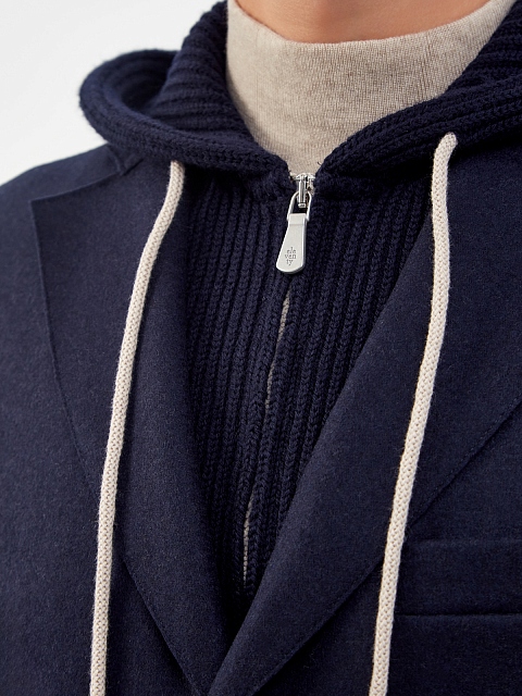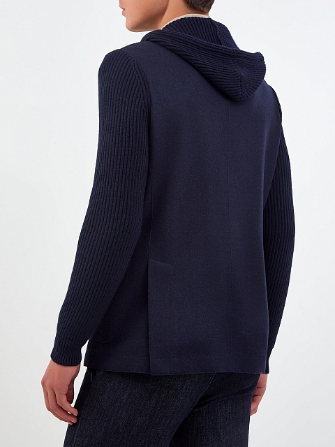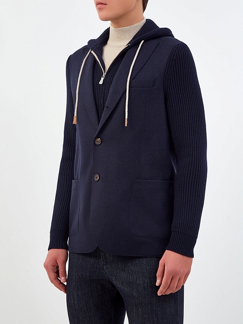 Комбинированный блейзер с отделкой английской вязки и капюшоном