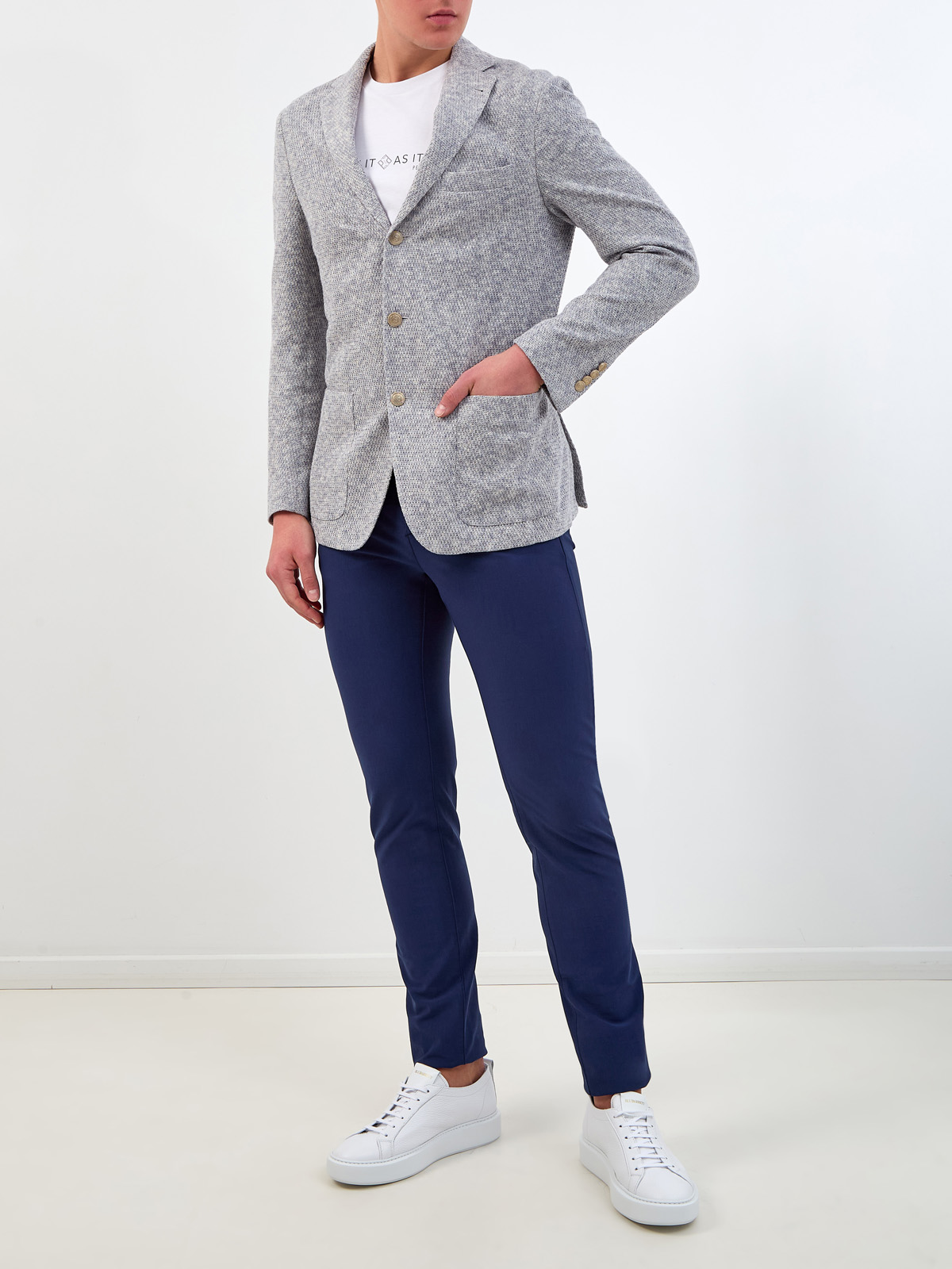 Блейзер из хлопковой и льняной пряжи с брендированной фурнитурой