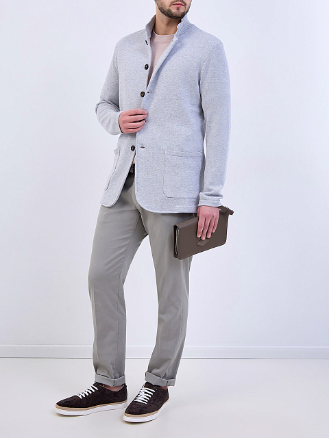 Блейзер из меланжевого хлопка с воротом английской вязки