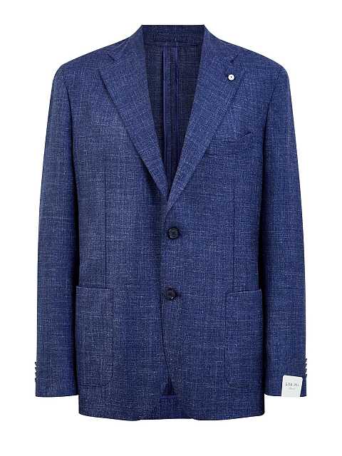 Лаконичный пиджак в стиле sprezzatura от L.B.M. 1911 со свободно сидящей линией плеч выполнен мастерами бренда вручную. Модель из плотной ткани на основе шерсти, шелка и льна с мелованным принтом идеально подходит для создания повседневных аутфитов. Накладные карманы придают образу нотку неаполитанского шика, лацканы английского ворота украшены изящной брошью — фирменным символом бренда. Детали: застежка на две пуговицы, закругленный нижний край. Сделано в Италии.
