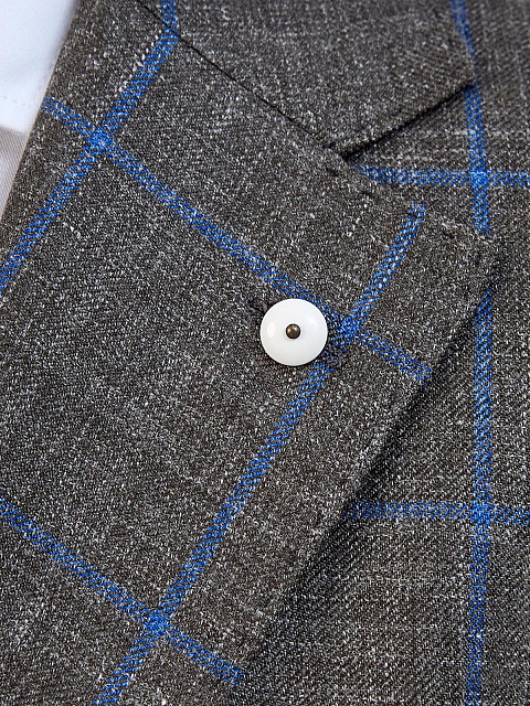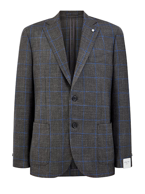 Лаконичный пиджак в стиле sprezzatura от L.B.M. 1911 со свободно сидящей линией плеч выполнен мастерами бренда вручную. Модель из шерсти, шелка и льна с мелованным принтом в крупную клетку идеально подходит для создания повседневных аутфитов. Накладные карманы придают образу нотку неаполитанского шика, лацканы английского ворота украшены изящной брошью — фирменным символом бренда. Детали: застежка на две пуговицы, закругленный нижний край. Сделано в Италии.