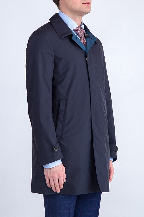 Двухсторонний классический плащ Canali — ключевой предмет мужского гардероба для весеннего сезона с его непредсказуемой погодой. Модель прямого кроя создана из влагостойкой матовой ткани Rain & Wind Tech в синей гамме и дополнена английским воротом, перфорированными замшевыми вставками на карманах и потайной застежкой на пуговицы. Сделано в Италии.