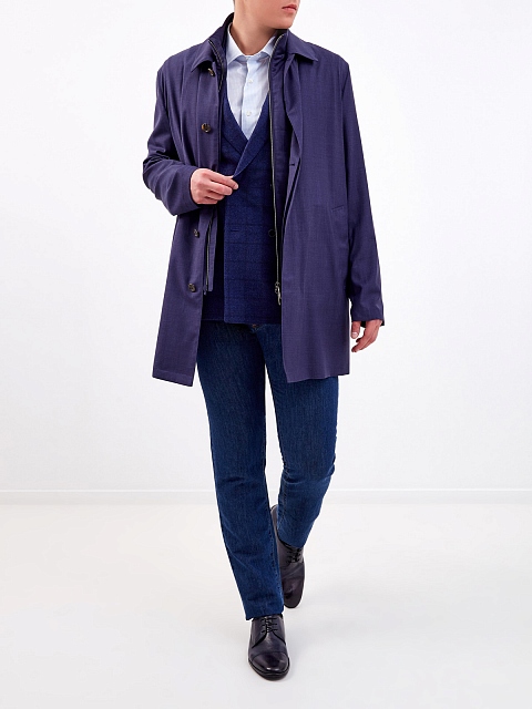 Классический мужской плащ из шерстяной ткани от Canali. Специальная обработка Impeccabile отталкивает брызги и предотвращает появление складок, делая модель особенно актуальной в межсезонье. Лаконичный крой со скрытой застежкой дополнен двойным воротом, который придает образу динамику. Облегченный крой без подкладки не стесняет движений, а гладкая отделка швов обеспечивает идеальную посадку. Сделано в Италии.