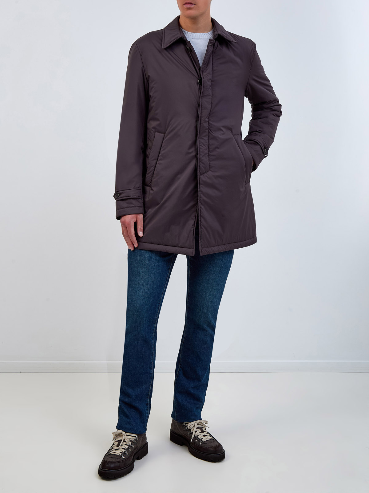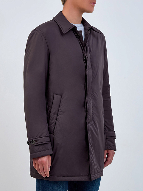 Утепленный плащ прямого кроя из матового влагозащитного нейлона