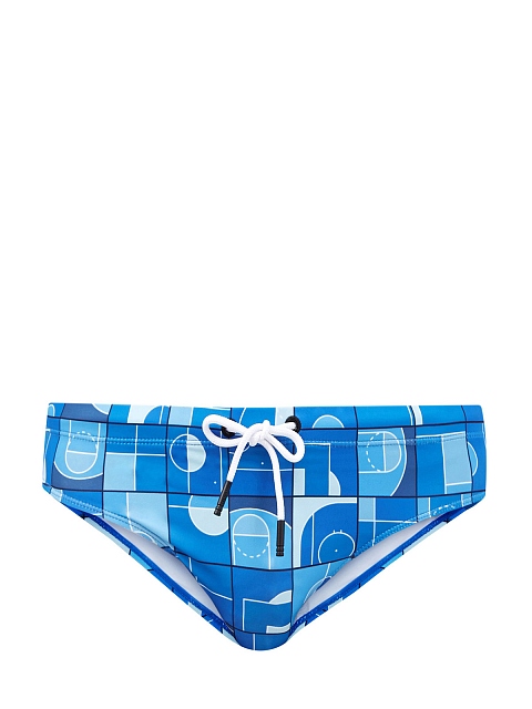 Эффектные мужские плавки-брифы с динамичным принтом от Bikkembergs. Модель выполнена из эластичной и быстросохнущей ткани, заниженная линия талии и пояс на кулиске обеспечивают комфортную посадку. Детали: изделие на подкладке, аппликация на спинке.
