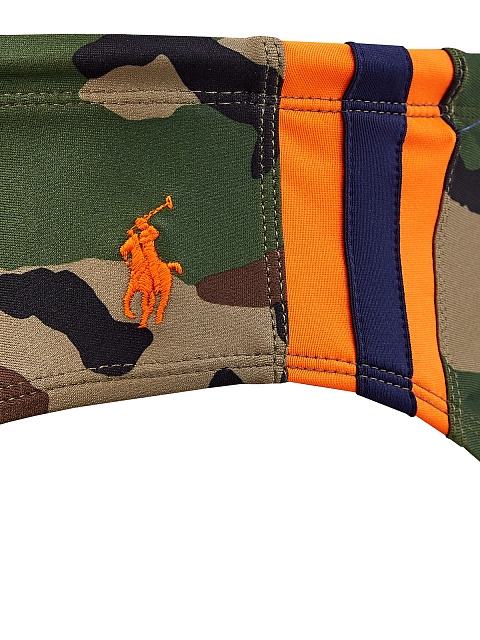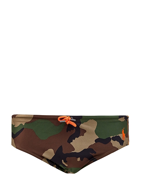 Эффектные мужские плавки-брифы с камуфляжным принтом от Polo Ralph Lauren. Модель выполнена из эластичной и быстросохнущей ткани, заниженная линия талии и пояс на кулиске обеспечивают комфортную посадку. Детали: полностью на подкладке, контрастные вставки по бокам, вышитый логотип.